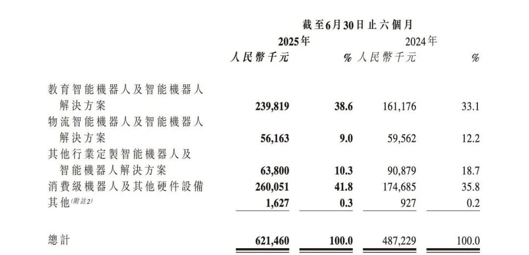 On August 29, UBTECH, known as the "first humanoid robot stock," released its 2025 interim financial report, showing revenue of 621 million yuan, a 27.5% year-on-year increase; a loss of 440 million yuan, an 18.5% reduction year-on-year; and a gross profit of 217 million yuan, a 17.3% year-on-year increase. In UBTECH's interim report, revenue from educational intelligent robots and solutions was 240 million yuan, a 48.8% year-on-year increase, accounting for 38.6% of total revenue (an increase of 5.5% from the same period in 2024).