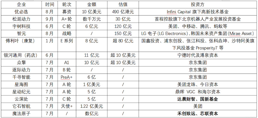 (2025 Major Robot Enterprise Financing List, Compiled by LanSha Finance Based on Public Information)