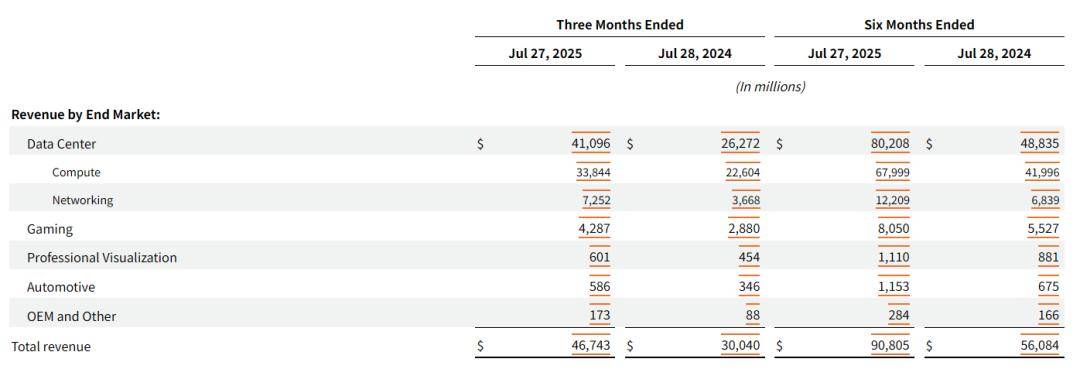 The data center business (Data Center) encompasses NVIDIA's computing cards (including GPUs like H20 and A100), InfiniBand (network solutions), and the CUDA platform. Revenue for the quarter reached $41.1 billion, a year-over-year increase of 56.4%, accounting for 88% of total revenue. Over the past three years, driven by the boom in AI large models and IT infrastructure construction, the data center segment has been the absolute linchpin of NVIDIA's revenue and growth.