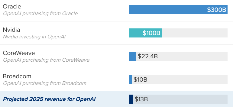 In late September, Nvidia's announcement of a $100 billion investment in OpenAI propelled the Nasdaq and S&P 500 to record peaks. This came just two months after OpenAI's $300 billion "Stargate" partnership with Oracle and shortly before CoreWeave doubled its AI infrastructure supply commitment from $11.9 billion to $22.4 billion. In this frenetic computing power arms race, OpenAI's deal pipeline is rapidly expanding with multi-billion-dollar transactions.