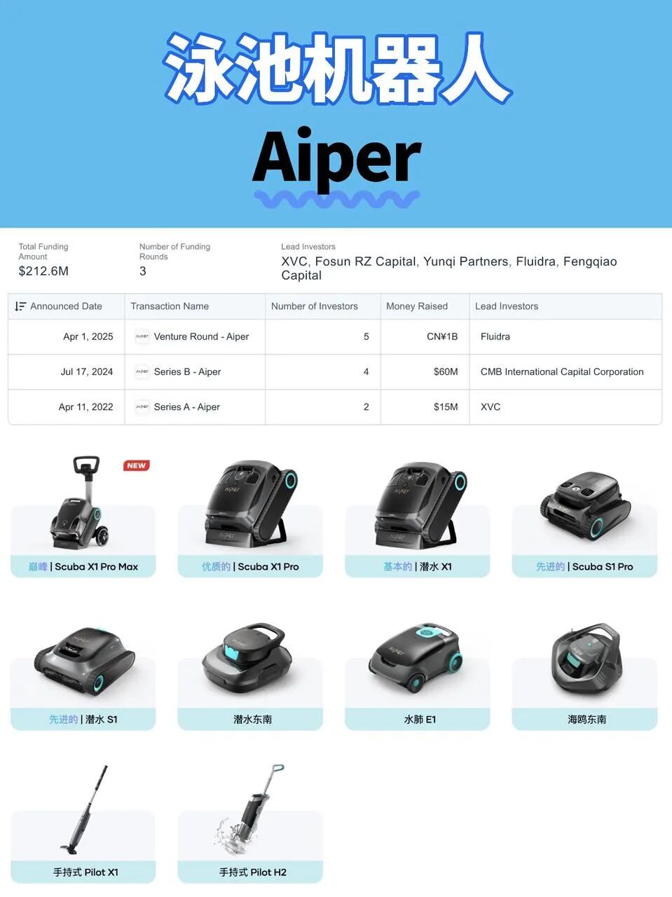 Aiper completed a strategic investment with pool equipment giant Fluidra in April 2025, with the latter acquiring approximately 27% of Aiper's equity. The two parties will collaborate on channel expansion, product development, and global market penetration.