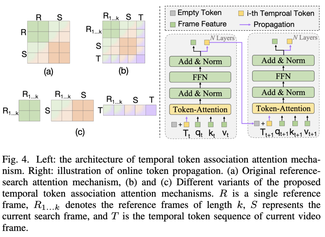 2. Temporal Token Association Attention Mechanisms: Two mechanisms, namely concatenated temporal token attention and separated temporal token attention, are proposed for online propagation and association of temporal information.