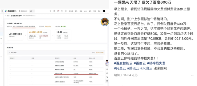 Shen has repeatedly underscored the significance of 'intelligence.' However, Zhang Yunjing, a small business owner who has utilized Baidu Intelligent Cloud for five years, has cautioned against hasty cloud adoption. He recounted a harrowing experience on November 4 when his backend displayed a download traffic charge of 250KB that amounted to over 20 million yuan, with the bill status marked as 'confirmed.' He promptly sought clarification overnight.