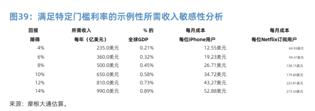 5) More critically, J.P. Morgan calculates that to achieve a reasonable 10% return on investment (ROI) for AI infrastructure, the industry must generate approximately $650 billion in annual revenue, equivalent to 0.6% of global GDP. In practical terms, this equates to each iPhone user paying $35 more monthly and $420 more annually.