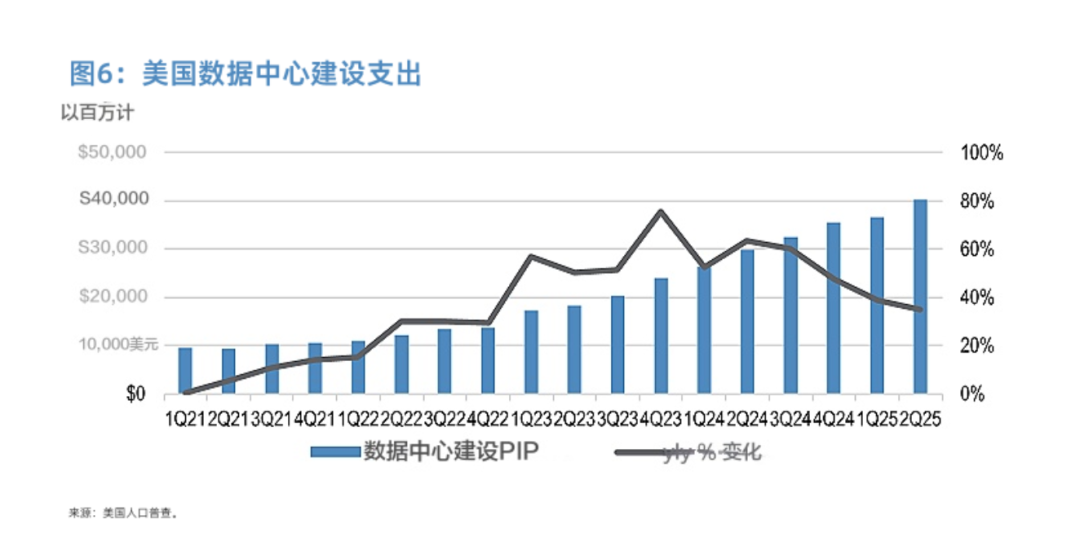 1) U.S. data center construction is expanding beyond tech giants to include a broader range of enterprises. This wave of construction is almost single-handedly propping up this year’s non-residential construction investment in the U.S. Excluding data centers, non-residential construction has actually seen negative growth this year, indicating that AI infrastructure has become a cornerstone of the U.S. economy.