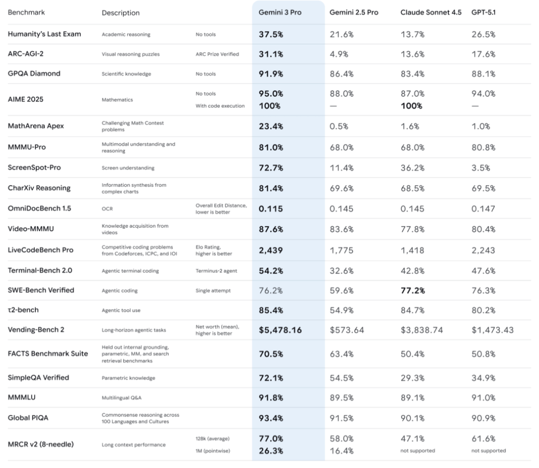 With quarterly revenue reaching $102 billion, marking a 16% year-over-year increase, all of Google's business segments delivered robust performances. Google Cloud, which has long been overshadowed by AWS internationally, experienced explosive growth of 34%. The newly launched Gemini 3 outperformed GPT-5 across various independent benchmarks, securing top positions. Numerous user experiences from both international and domestic markets underscore its real-world performance and capabilities.