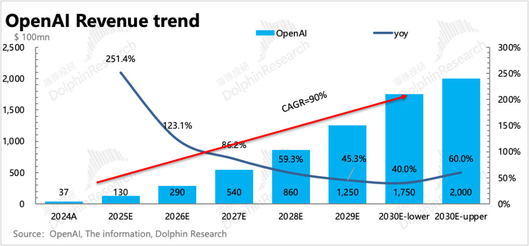 Rapid Revenue Growth: According to media reports, based on OpenAI's current monthly revenue growth rate, it is projected to reach an annualized revenue of $20 billion by the end of 2025, with a full-year revenue of $13 billion in 2025, representing a year-over-year increase of 250%.