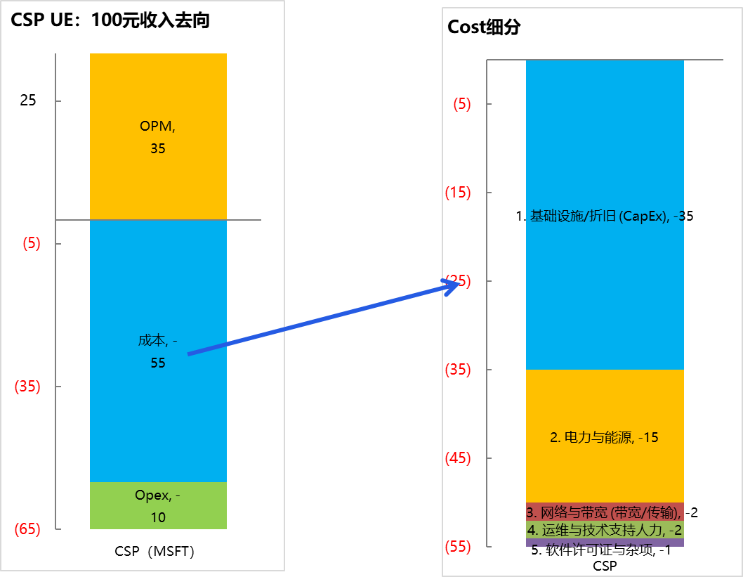 A. The Economics of Cloud Service Providers: For every 100 yuan in revenue – 55 yuan in costs, 10 yuan in operating expenses, and 35 yuan in profit;