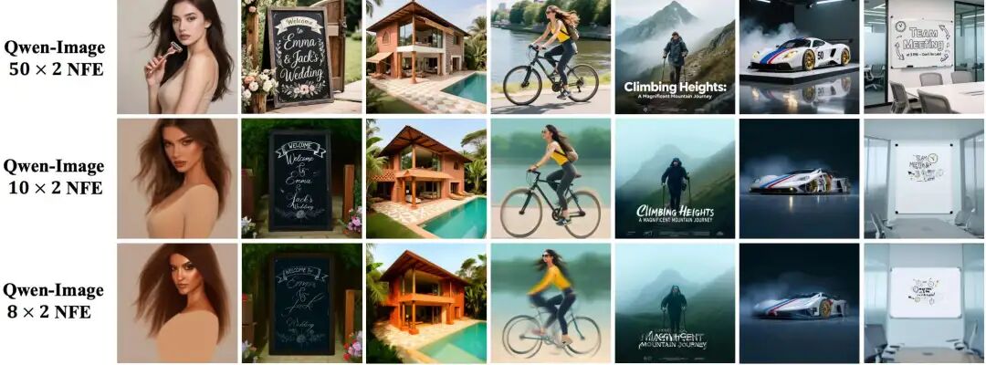 Acceleration Ratio: Achieves 5x acceleration (8-10 step inference) on FLUX.1-12B and Qwen-Image-20B models.