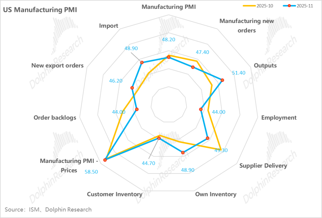 Recent economic data indicates a weakening in the U.S. manufacturing PMI following government shutdowns, with the critical new orders component remaining below the 50-mark in November and continuing to deteriorate.