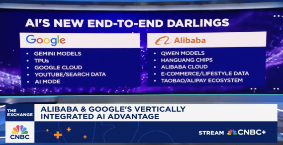 Countries worldwide are leveraging Qwen to build localized AI capabilities, with Alibaba's open-source ecosystem weaving an invisible global technology network that bypasses U.S. controls. This explains why Wall Street now ranks Alibaba alongside Google—both companies possess the uncopyable moat of 'full-stack AI,' with their stock prices surging over 93% year-to-date.