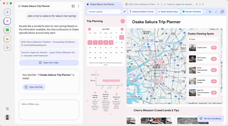 GenTabs shares a highly similar philosophy. The difference is that Ingenious Flash Apps are designed for mobile devices, catering more to personal life and high-frequency scenarios. In contrast, GenTabs is rooted in the web world, drawing from web pages with higher information density, often addressing complex tasks like planning, research, and comparison. However, their starting points are almost identical.