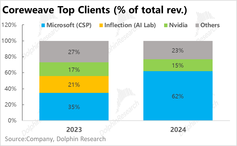 Therefore, from a business model perspective, unlike traditional clouds that can fully smooth out demand fluctuations and reduce risks from industry downturns through a large number of diverse customers across different industries, AI-focused new clouds like CoreWeave, which are highly concentrated in a few enterprises and limited industries, undoubtedly face greater demand risks (e.g., losing major customers) and logically have little bargaining power with leading customers that contribute the majority of their revenue.