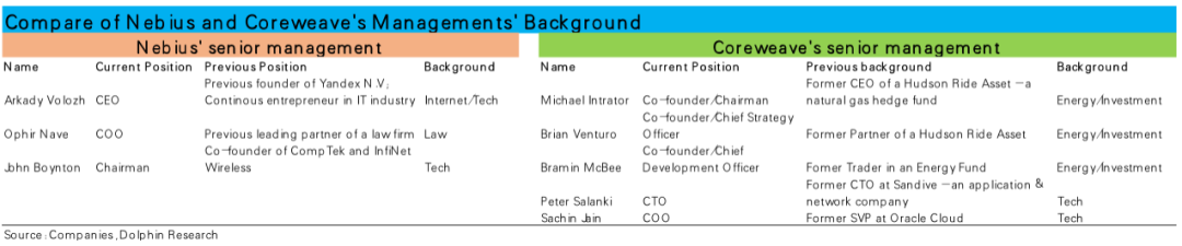 In contrast, Nebius, reportedly one of CoreWeave's main competitors in the new cloud sector, has a stronger advantage in software/programming capabilities. As a side piece of evidence, the different backgrounds of the founders and core management teams of the two companies also offer a glimpse into their differing orientations.