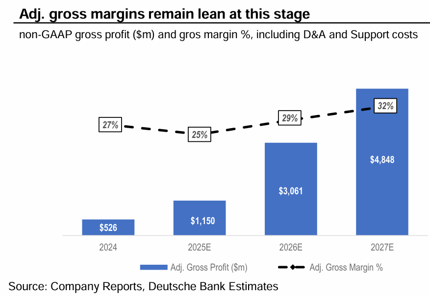Consequently, the market consensus is that CoreWeave's true gross profit margin is only around 25-30%, significantly lower than Microsoft's Intelligent Cloud segment's gross profit margin of over 60%. This reflects CoreWeave's weak bargaining power within the industry chain.
