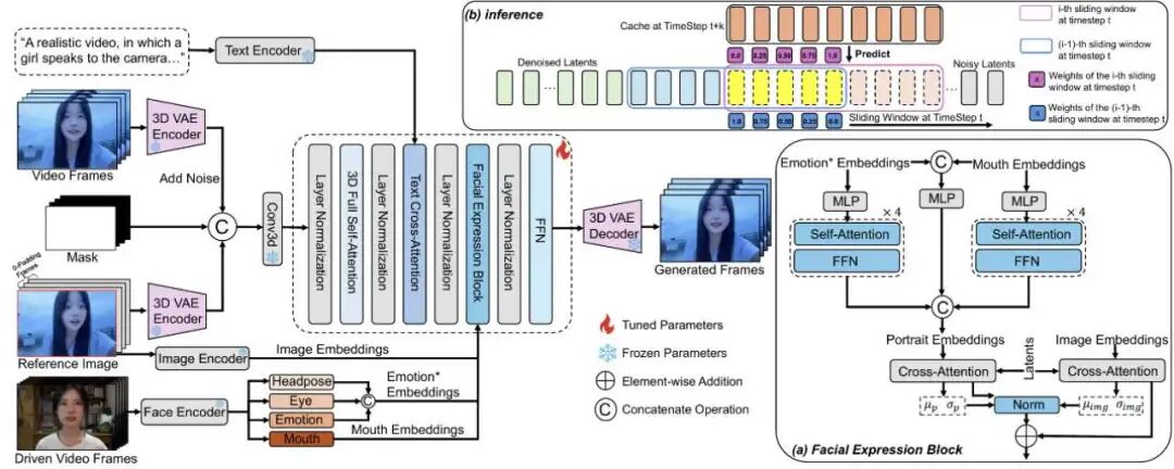 As depicted below, FlashPortrait is developed based on the Wan2.1-14B base model, constructing a comprehensive technical route of "feature alignment-smooth transition-high-speed generation" through three core technical modules.