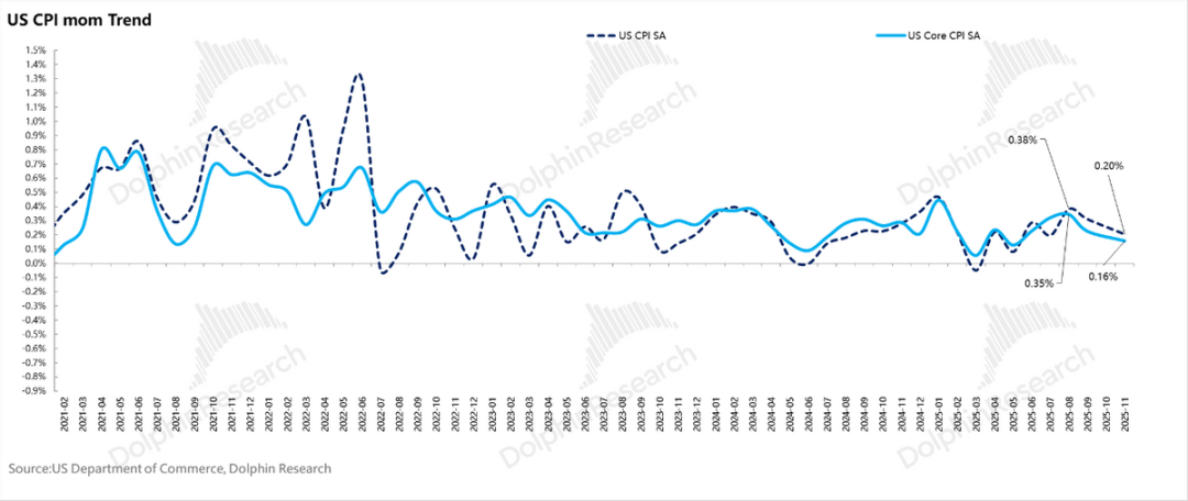 While Q3 GDP shone, inflation remained a concern. However, CPI data for October and November suggest easing pressure. Although October CPI data is permanently missing, comparing November to September, the U.S. core CPI index rose just 0.16% over two months—a clearly low growth rate.