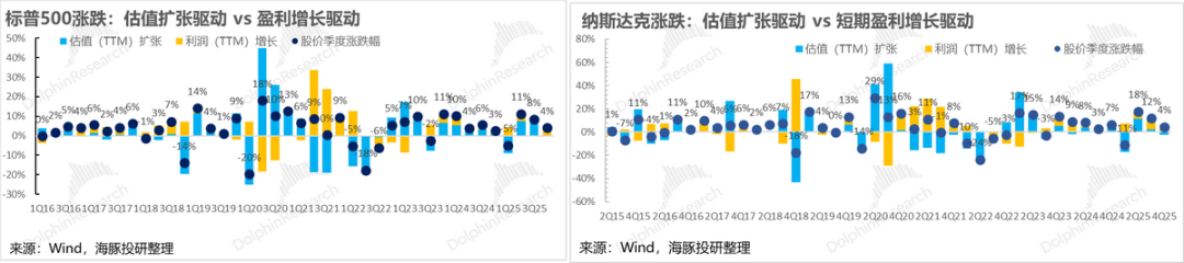 Especially after Q4 liquidity tightened, U.S. stocks adjusted throughout the quarter. The key question is: Will 2026 see loose liquidity to support valuation expansion? Dolphin Research believes this is unlikely without Fed-Treasury coordination.