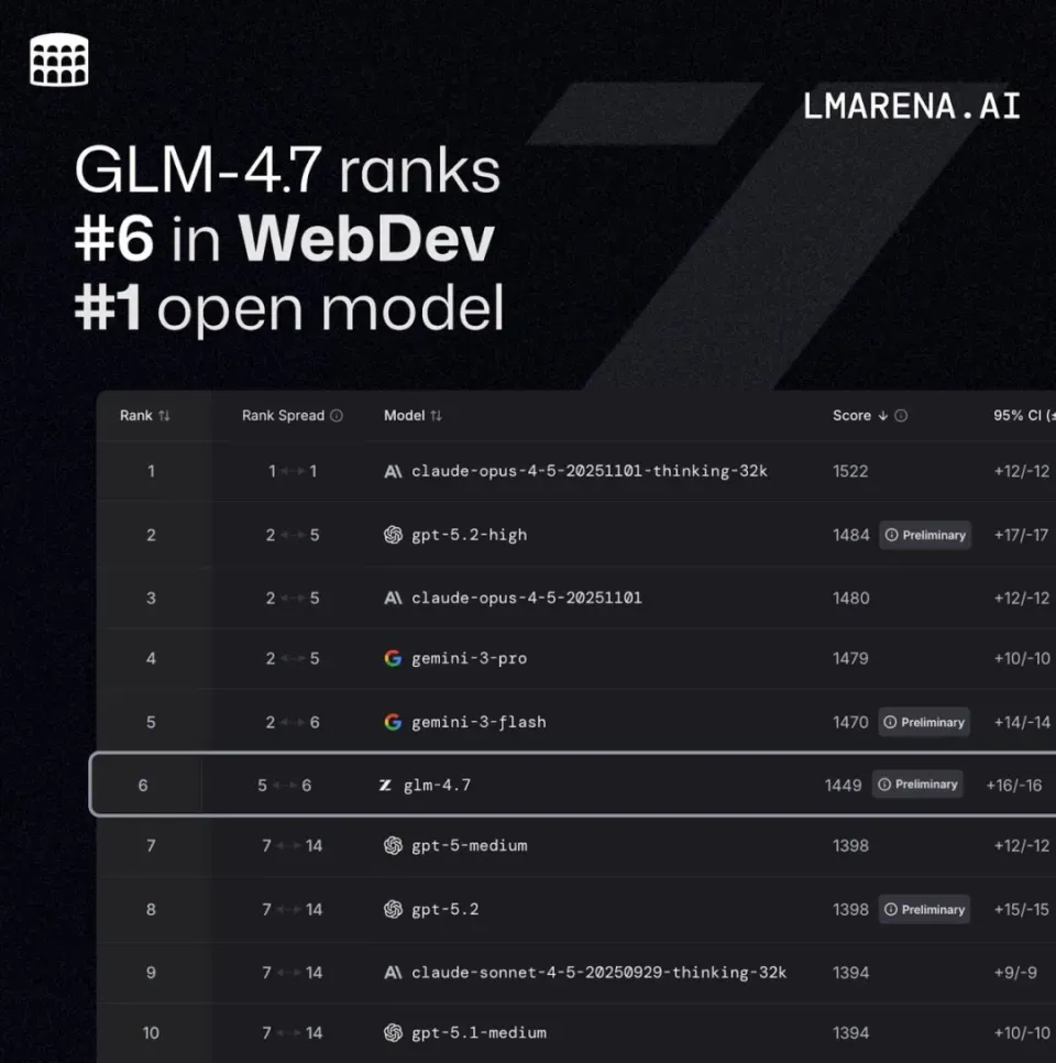 Zhipu's Flagship Model GLM-4.7 Ranks First in Open Source and Domestic Markets, Surpassing GPT-5.2