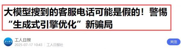 According to a previous report by Workers' Daily, some financial black and gray market organizations have interfered with large models to produce fake customer service phone numbers for financial institutions, leading some users to believe the incorrect numbers and fall victim to scams.