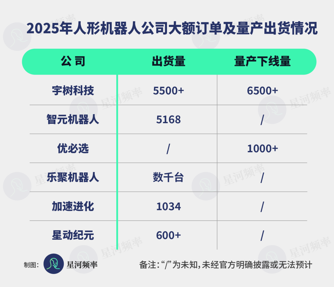 Among the 14 humanoid robot companies involved in the 48 large orders counted, only 6 have publicly disclosed clear shipment or mass production volume data, accounting for less than half.