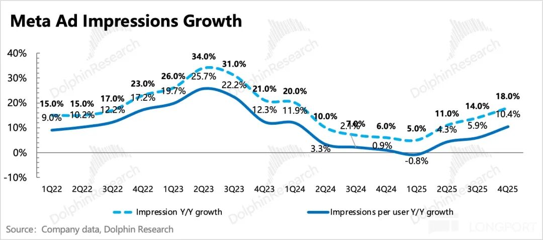Currently, we are witnessing a rare period of simultaneous growth in both advertising revenue and ad impressions per user. In the fourth quarter, ad impressions growth accelerated across all regions, particularly in Asia. Dolphin Fan attributes this primarily to increased consumption of Meta Reels short videos (with Reels content now accounting for half of Instagram's time spent), as short video ads naturally have higher fill rates, structurally elevating the group's average.