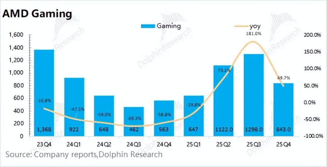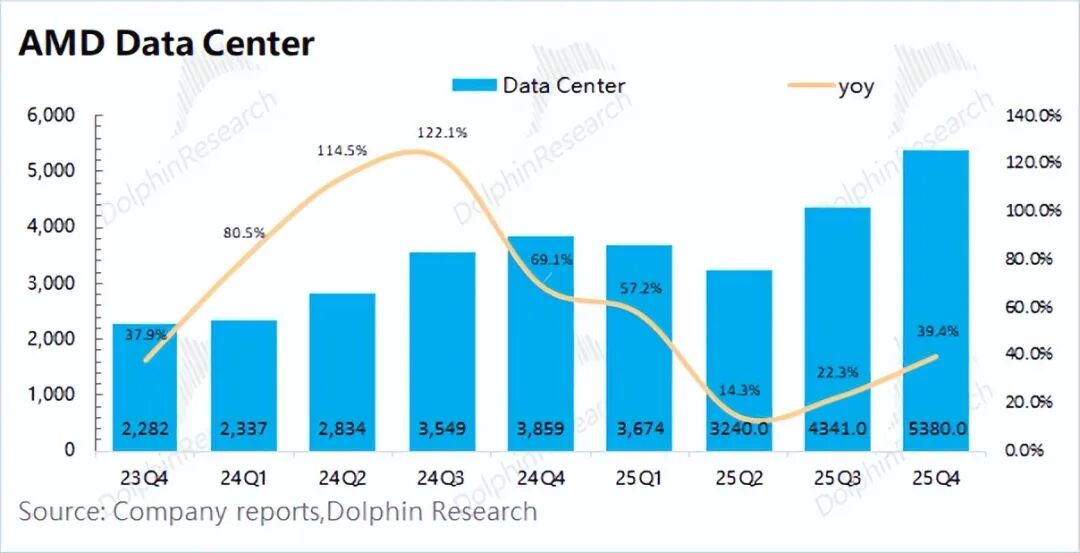Specifically, ① Semi-Custom Business: This segment saw year-on-year growth but experienced a sequential decline. It is anticipated that in 2026, as the console cycle enters its seventh year, Microsoft will launch its next-generation Xbox (equipped with AMD's semi-custom SoC) in 2027. ② Gaming GPUs: The Radeon RX9000 series witnessed strong demand during the holiday season, with channel sales on the rise.