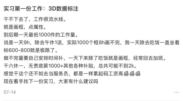 When the topic of data annotation arises, many still recall scenes from a few years back: In outsourcing hubs across second- and third-tier cities, hundreds of workers would sit in rows, eyes fixed on screens as they meticulously outlined vehicles, pedestrians, and traffic lights in images. These tasks, with their extremely low barriers to entry, required no prior training and compensated workers on a per-piece basis. Completing a thousand annotations would yield a meager 200 yuan.