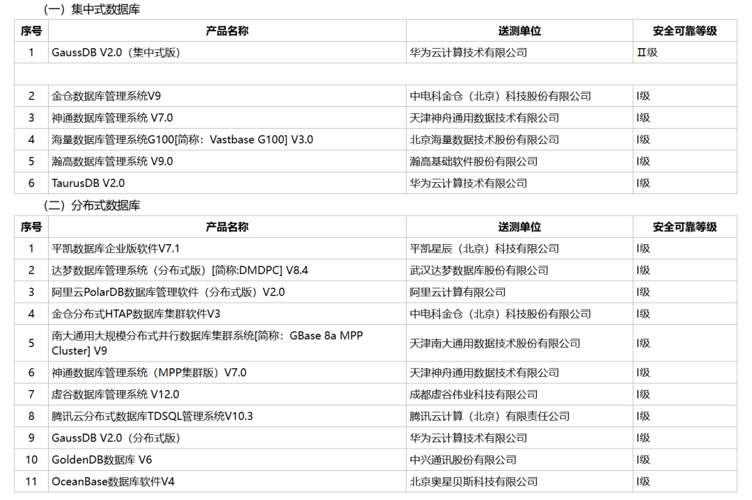 Although Kingbase is protected by administrative orders, there are too many databases that have passed information technology innovation certification, providing users with a wide range of options.