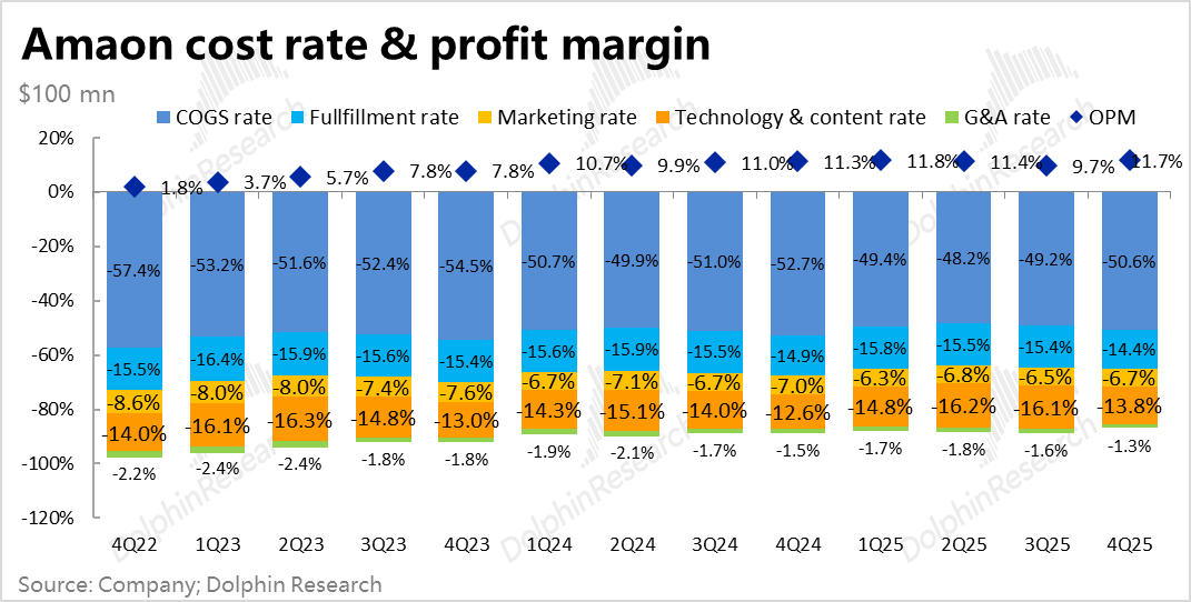 Specifically, except for R&D expenses, fulfillment and marketing expenses only increased by around 10% YoY, while administrative expenses even decreased by 6% YoY. Only R&D & content expenses increased significantly by 25% YoY.