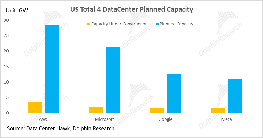 From the perspective of the dominant United States, by the end of 2025, the operational data center capacity in the U.S. will be 44 GW, with 10 GW under construction and approximately 70 GW in the planning phase.
