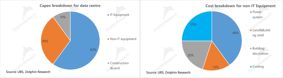 According to Jensen Huang, the construction cost of a 1 GW data center capacity is approximately USD 50-60 billion (including approximately USD 35 billion for the chip system). Dolphin Research takes the median value of USD 55 billion/GW (assuming all data centers use NVIDIA chips).