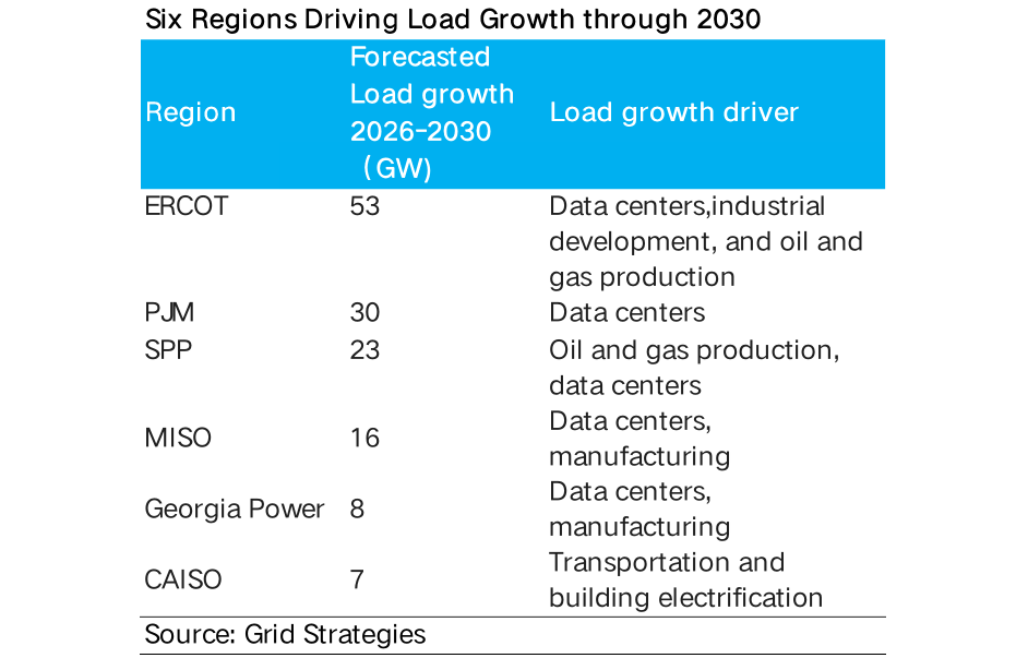 Considering that AI data centers have high concurrency and high-load characteristics, if we assume that 100% of the new capacity is converted into peak load, this means that the U.S. power grid will face an additional peak load impact of 80 GW over the next five years.