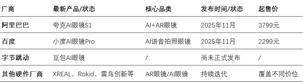 Currently, ByteDance has not officially released any consumer-grade AI glasses but has products in the preparation stage for shipment, with plans for a phased launch in 2026. Given its subsidiary PICO's long-term technical accumulation in VR, ByteDance remains a potential variable in the market.