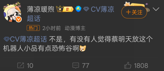 For example, in the skit "Grandma's Favorite," Cai Ming reunited with robots 30 years after her previous robot-themed performance, with rows of robots even evoking the "uncanny valley" effect. Long-time viewers exclaimed, "Nostalgia hit hard!" comparing it to Cai Ming's earlier robot skit.