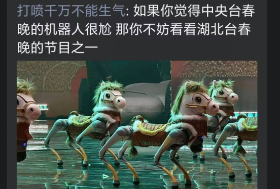 Hubei TV's gala saw robots collaborate with singer Hailai Amu on a piano performance, while 12 robotic dogs in pony outfits and 12 robots performed the opening dance together. Faced with this robotic "invasion," netizen reactions were sharply divided.
