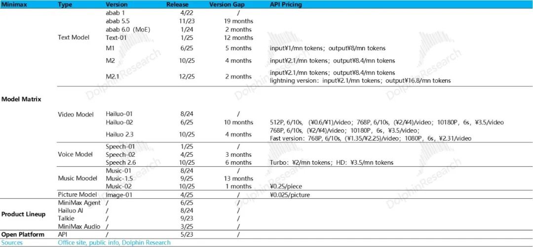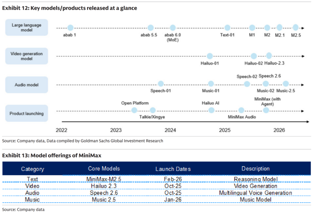 Since Q4 2025, all modalities have iterated rapidly, culminating in the February 2026 M2.5 base model, which introduces Agent capabilities for coding, tool integration, and office scenarios—aiming to transform AI from 'assistant' to 'AI colleague.'
