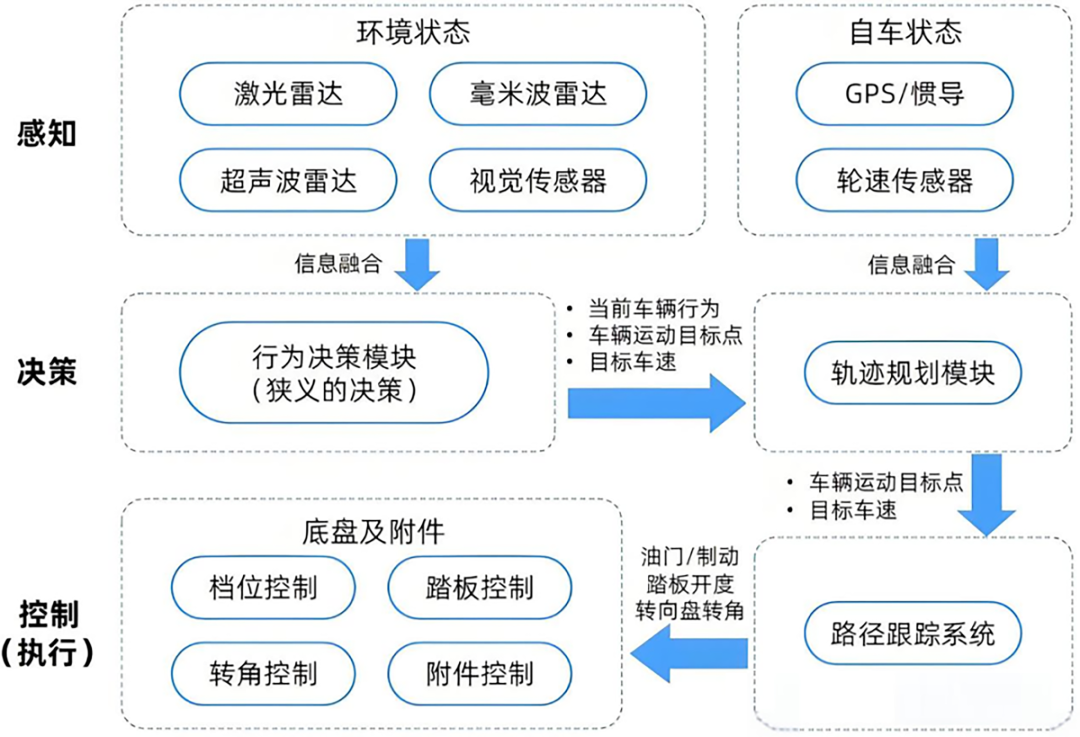 Traditional autonomous driving architectures employ a cascaded design. Sensors collect data, which the perception module processes for object detection and semantic segmentation, outputting object labels. Subsequently, the prediction module calculates potential trajectories of surrounding participants, while the planning module generates the vehicle's driving route based on predefined mathematical models.