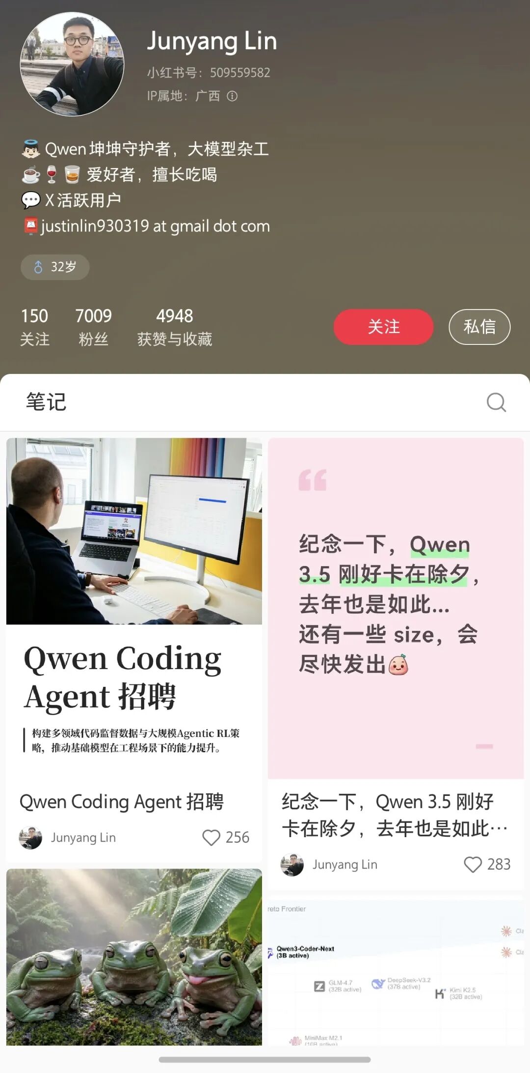 Suspected Xiaohongshu homepage of Junyang Lin himself.