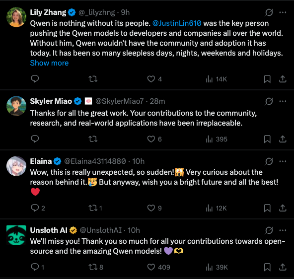 Several technical backbone members of Qwen also announced their departures around the same time. This adds some uncertainty to the future development of the Qwen model.