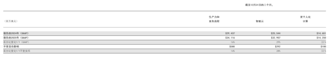 During the same period, Microsoft's Productivity and Business Processes segment achieved revenue of $34.12 billion, up 16% year-over-year; Microsoft 365 commercial cloud services revenue grew by 17%; Microsoft 365 consumer cloud services revenue grew by 29%; LinkedIn revenue grew by 11% year-over-year; Dynamics products and cloud services revenue grew by 19% year-over-year.