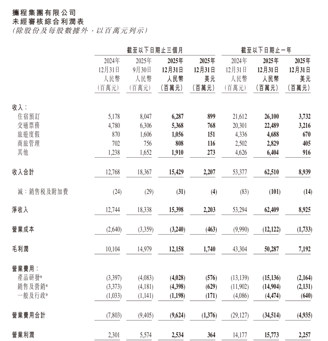 In fact, to counter traffic loss, Ctrip's sales and marketing expenses surged by 25% year-on-year in 2025.