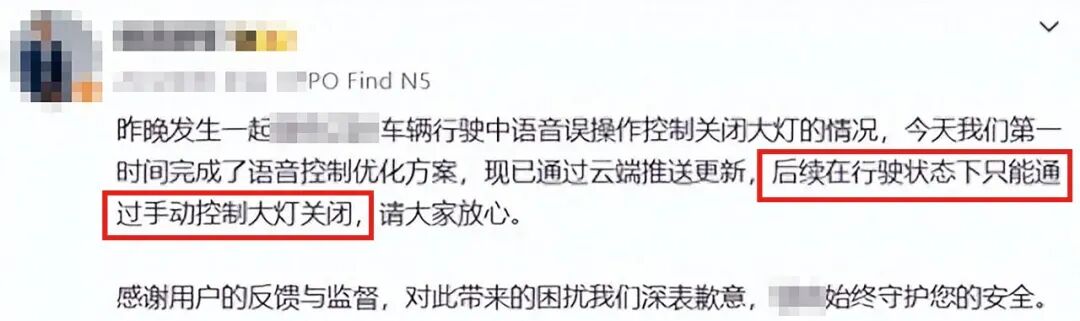 The consequences of this "minimalist" approach are severe. With the disappearance of physical buttons, the driver can no longer rely on muscle memory to turn on the lights via a lever when visual guidance is lost. After the accident, the automaker urgently rolled out an OTA update, modifying the headlight-off permission while driving to "manual control only."