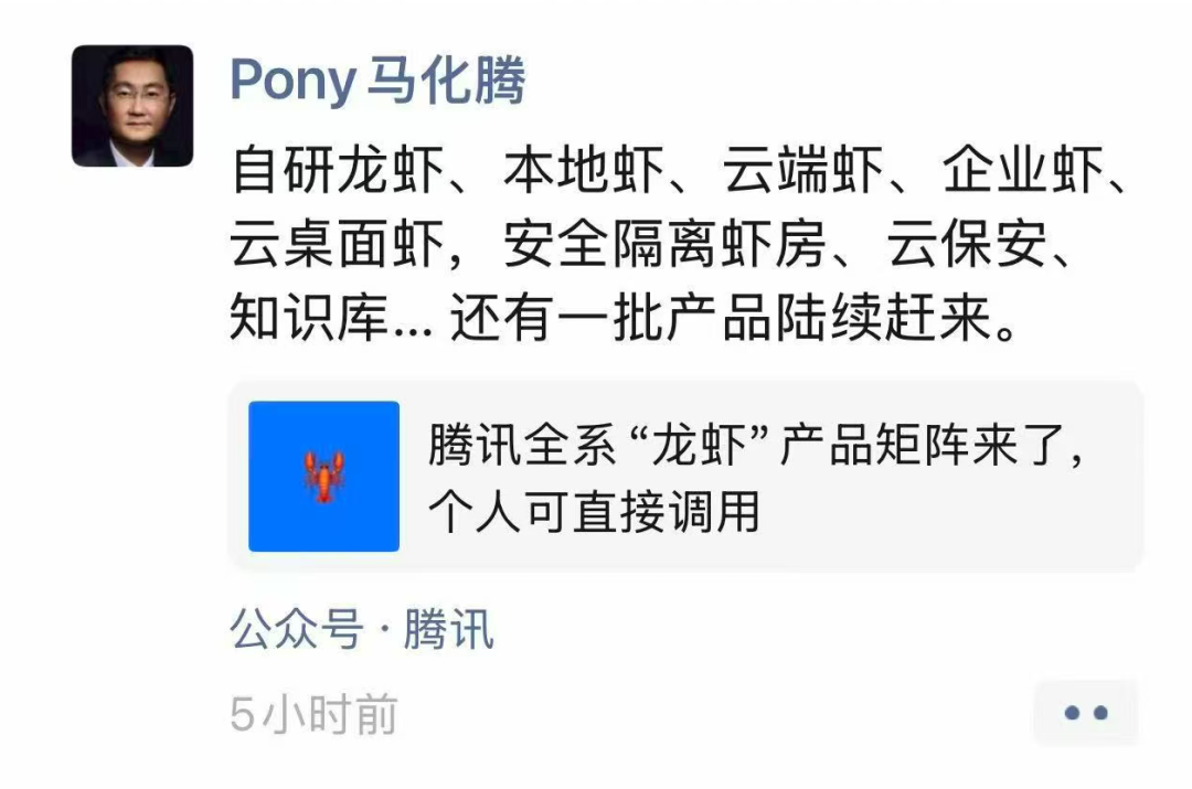 On March 9th, Pony Ma said on WeChat Moments, 'I didn't expect lobsters to be so popular.'