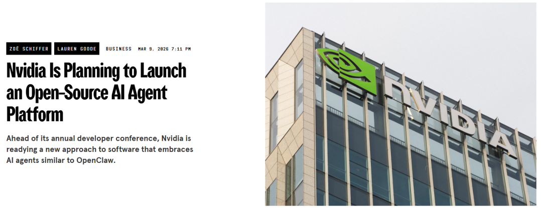 According to Wired, NVIDIA is emulating domestic AI firms' "shrimp-farming" approach, planning to launch the open-source AI agent platform NemoClaw.