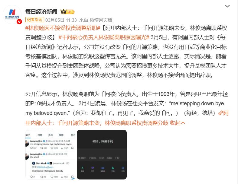 Media reports previously highlighted divergent goals between the Qwen team (led by Junyang Lin) within Tongyi Lab and the Qwen product team. After the Qwen App project launched in September 2025, the Qwen technical team prioritized 'open-source influence,' developing models of various sizes and tools while engaging the open-source community. The product team sought earlier upgrades to the Qwen foundational model's multimodal capabilities, such as image editing and photography, but the Qwen team prioritized open-source community downloads.