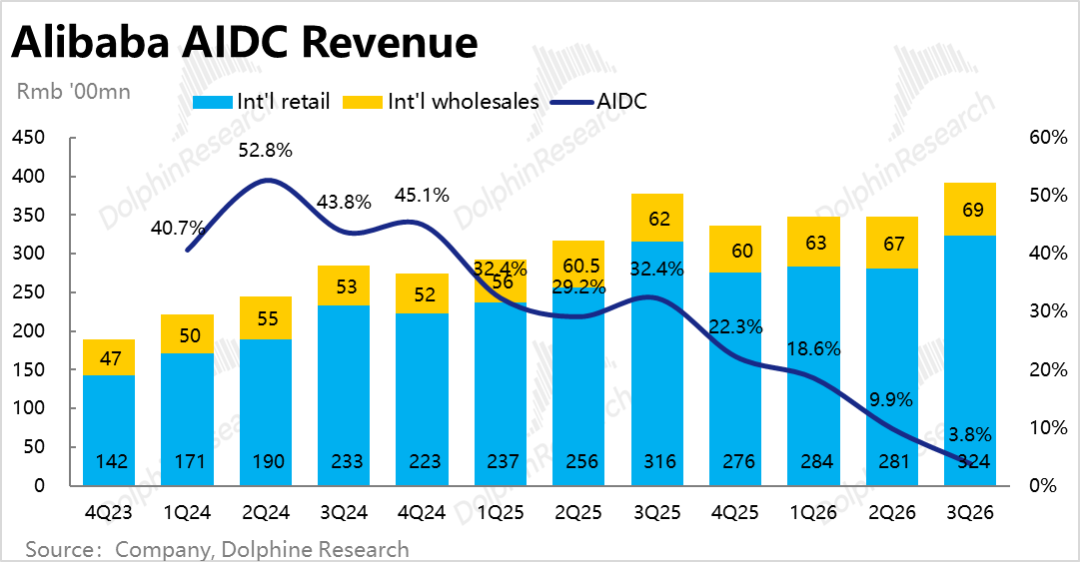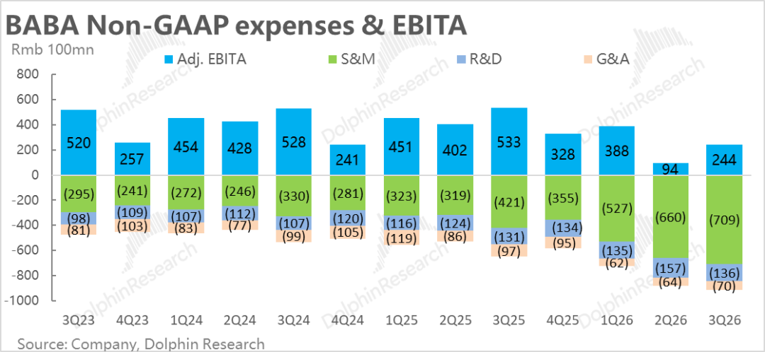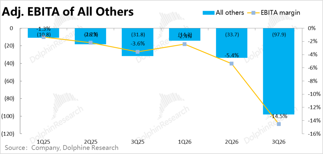 Additionally, it was surprising that the international e-commerce adj. EBITA incurred a loss of RMB 2 billion again this quarter. However, this was primarily due to seasonal effects from major sales seasons (e.g., Black Friday), representing an improvement compared to the approximately RMB 5 billion loss in Q3 FY25.