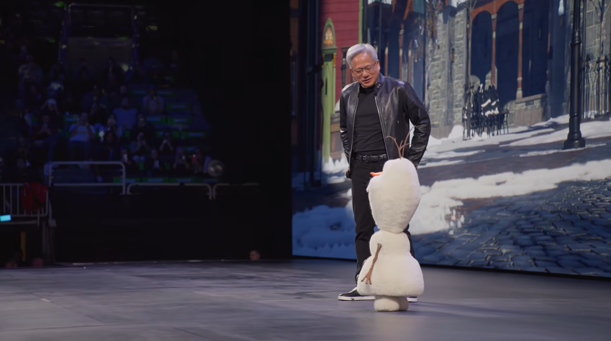 “Can you imagine? This is what the future of Disneyland will look like,” Huang said, gesturing to the Olaf robot beside him. “All robotic characters will move freely around the park.”