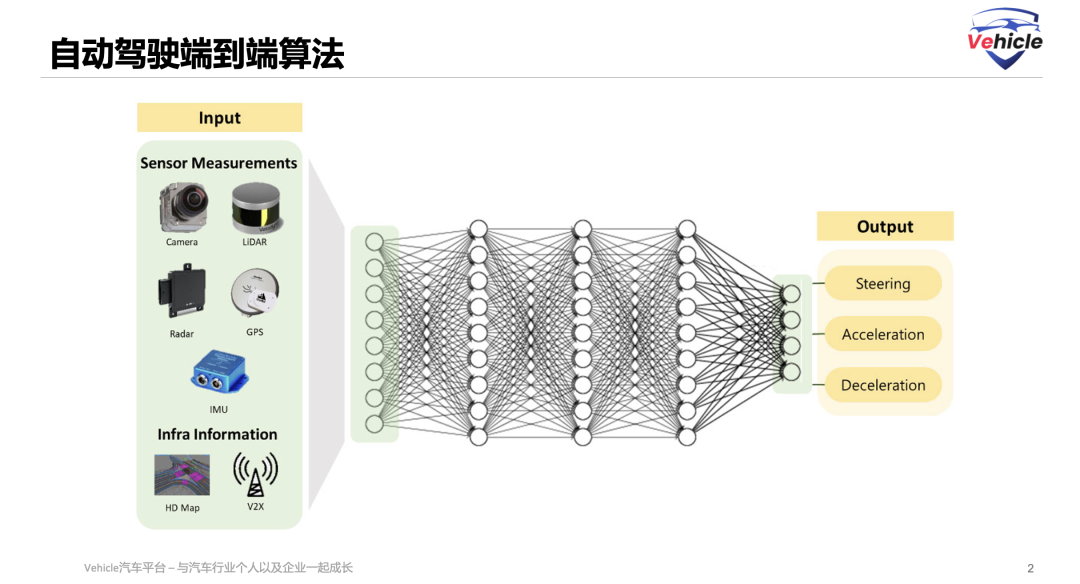 Advantages and disadvantages: The advantage is truly 'lossless' information transmission with extremely high theoretical potential, as the model learns purely from data how to map pixels directly to actions. The disadvantage is its typical 'black box' nature with extremely poor interpretability—if the vehicle makes a strange maneuver, engineers cannot locate and fix the issue through code debugging as before but must rely on feeding more targeted data to correct it.