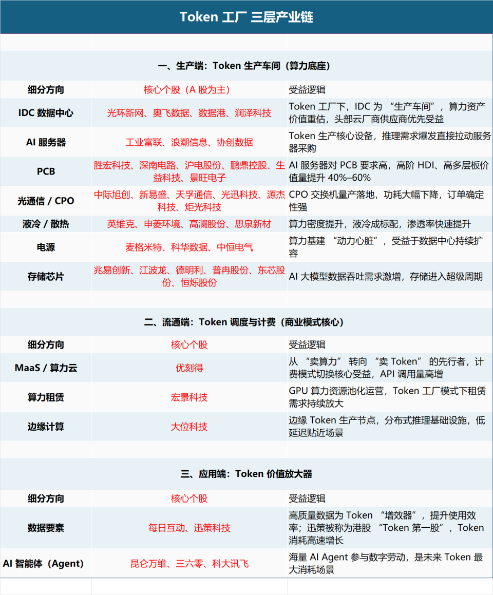 (2) Core Logic: Unifies AI computing power, electricity, and intelligent services under Token-based pricing, creating a business model where 'data centers = Token factories.'